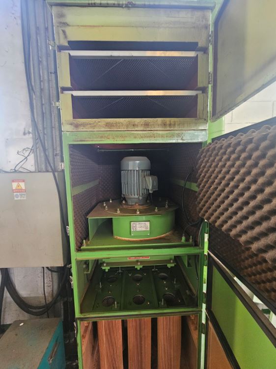 본체 하부에 여과집진기(카트리지), 상부에 탈취시설(활성탄 필터) 연결되어 있습니다.